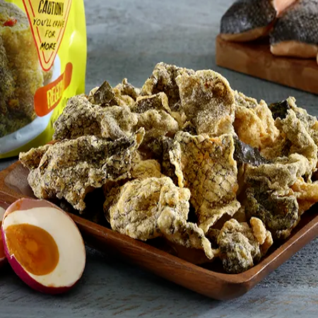 Made from premium Salmon Skin 100g, that is seasoned with REAL salted egg making it incredibly tasty and is oven-baked to perfection to give it a satisfying crunch. Sealed with Nitrogen and Desiccant inside to locked-in freshness and taste.