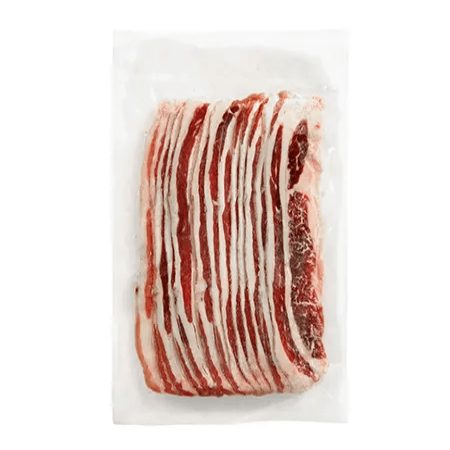 USDA Choice Thin Sliced Beef Belly "Usamgyeop" thicker strips of unsalted beef. Has the perfect marbling of meat and fat that makes it flavorful and tender. Perfect for Korean BBQ and best to dip in sesame oil, salt and pepper.